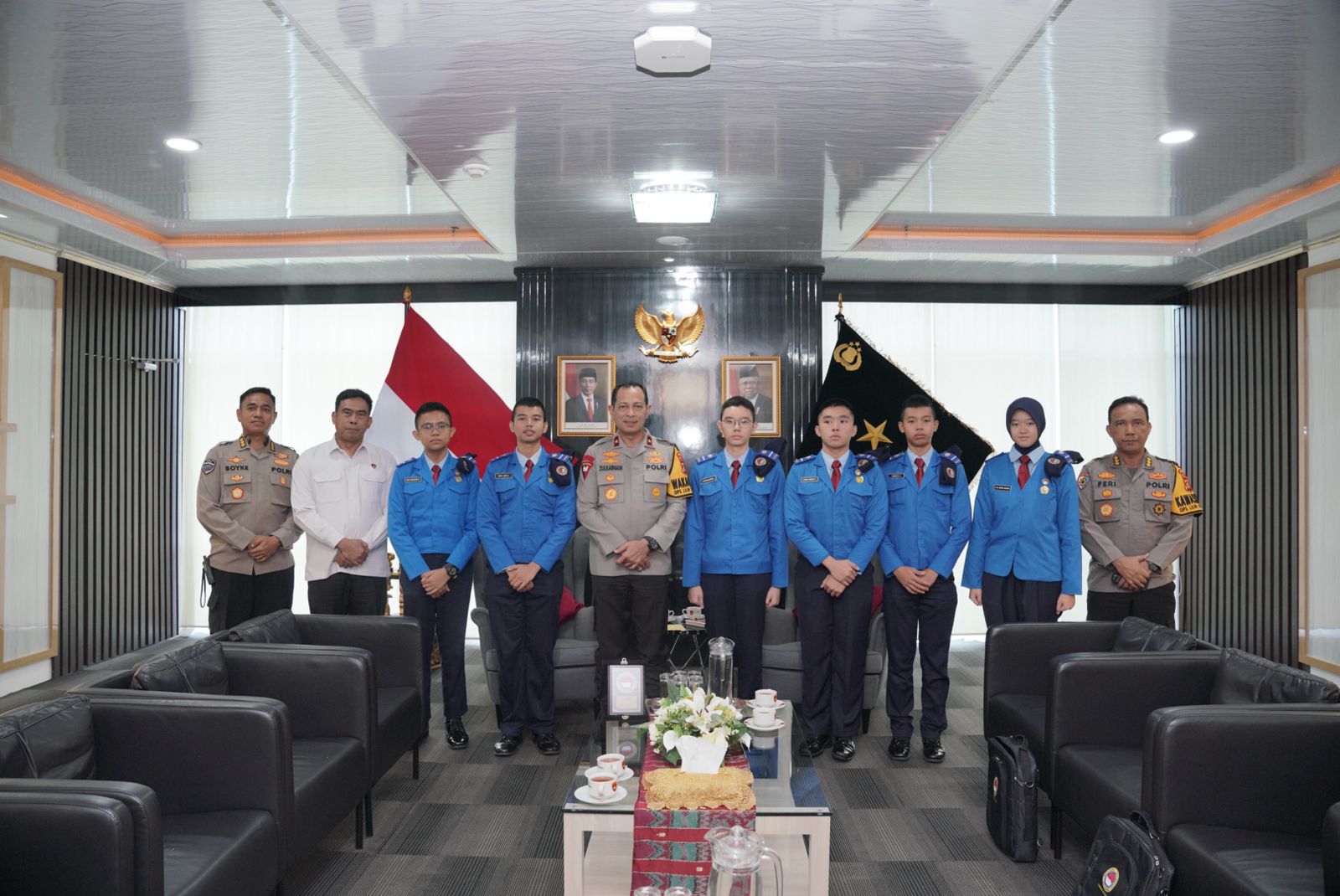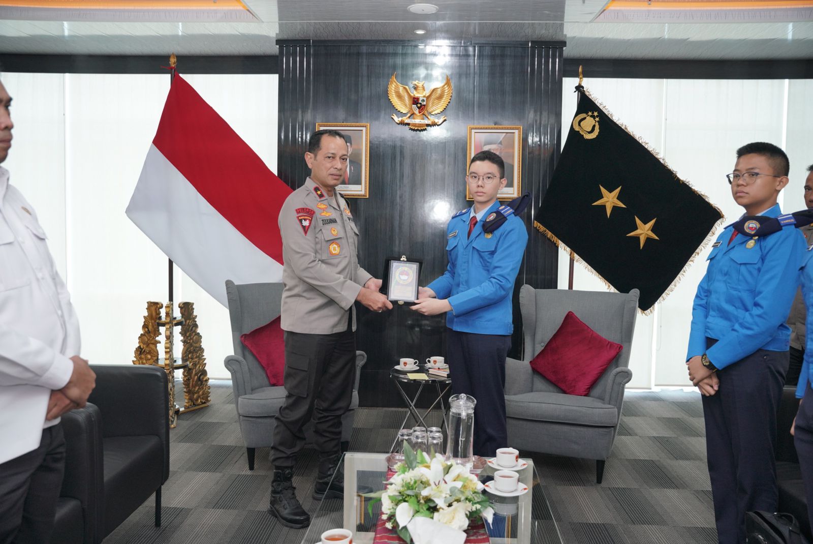 Perwakilan siswa SMA Taruna Nusantara Magelang sebanyak enam orang tersebut disambut dengan hangat oleh Wakapolda Sumsel di ruang kerjanya.