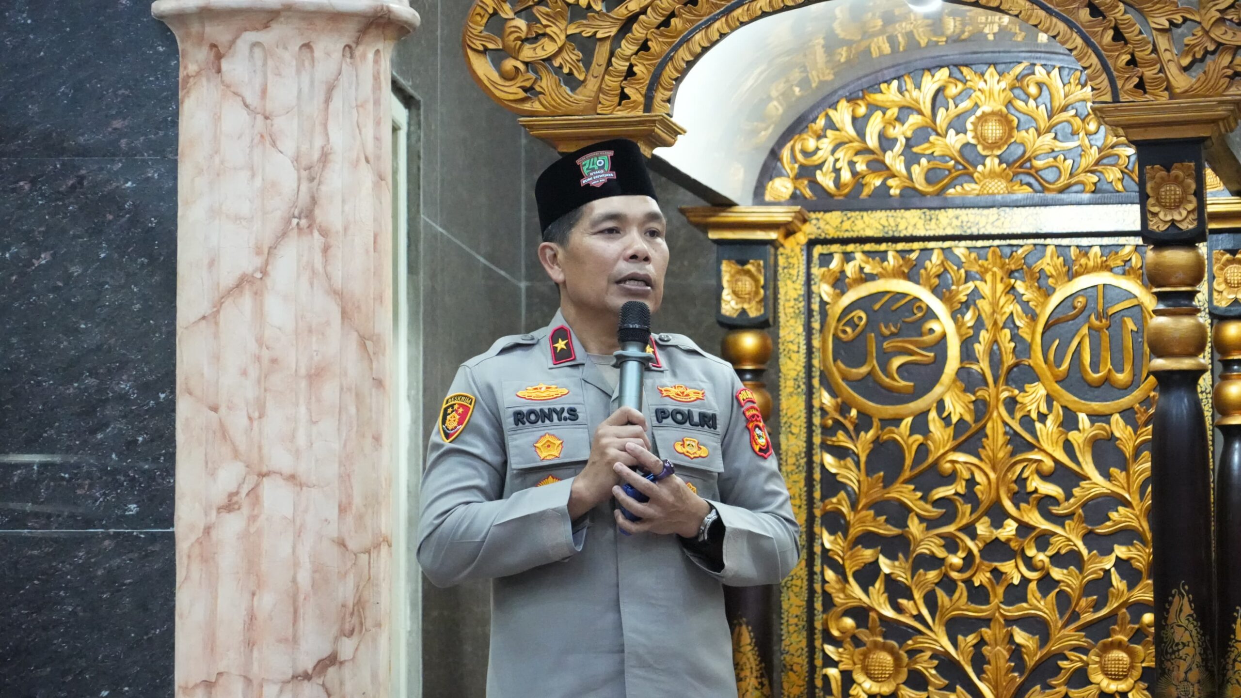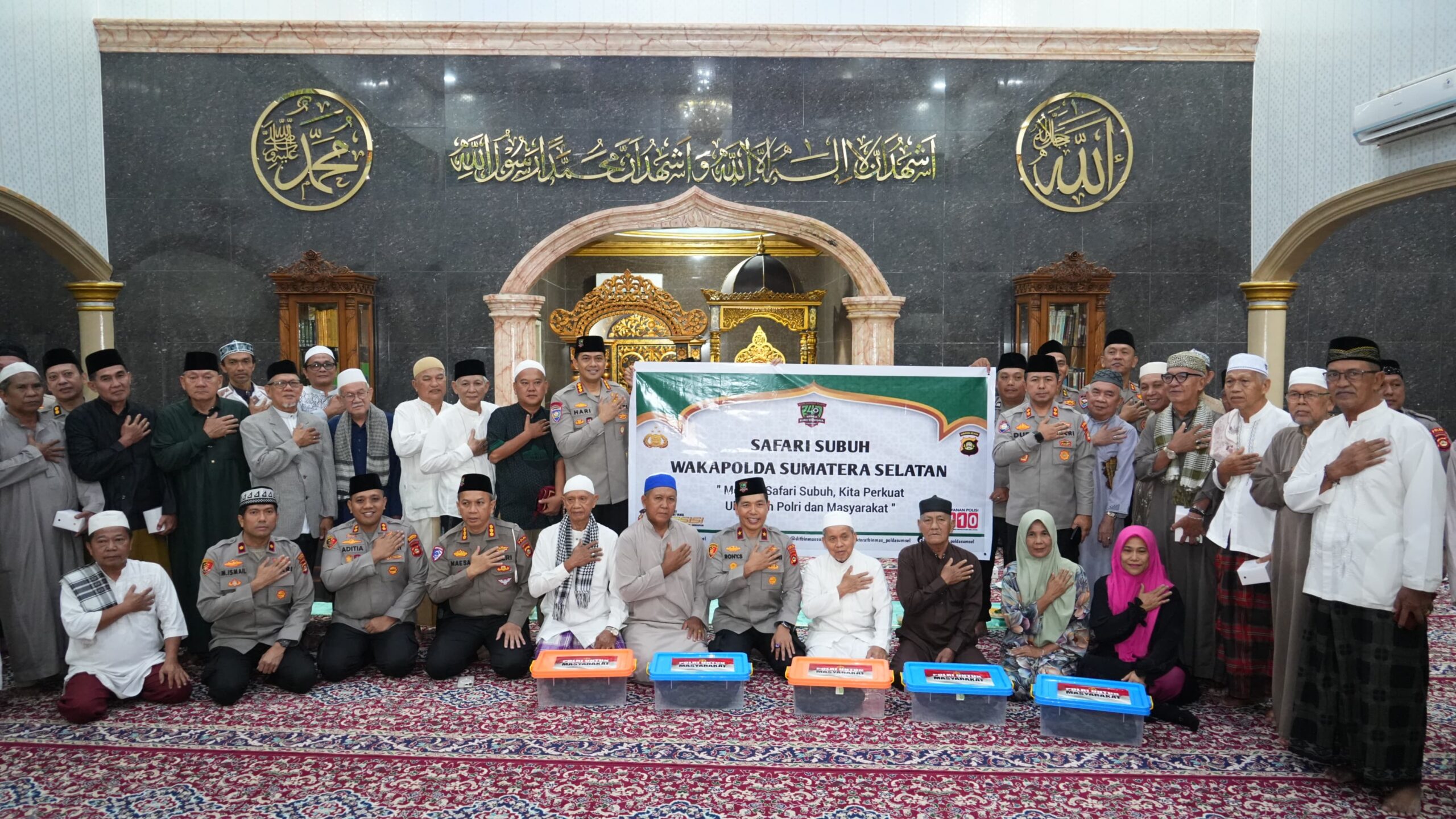 Wakapolda Sumatera Selatan Brigjen Pol Rony Samtana, S.I.K., M.T.C.P. hadir didampingi sejumlah Pejabat Utama Polda Sumsel, di antaranya Dir Lantas Kombes Pol Maesa Soegriwo, S.I.K., S.H., dan Dir Binmas Kombes Pol Hari Purnomo, S.I.K., S.H., M.H., M.Han., serta unsur pemerintah setempat dan pengurus masjid.