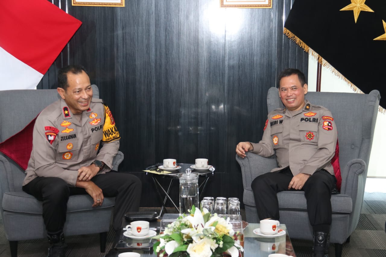 Liputanabn.com | PALEMBANG, – Kapolda Sumsel diwakili Wakapolda Sumsel Brigjen Pol M.Zulkarnain,SIK,MSi menerima kunjungan Tim Pengawas Operasi (Wasops) Ketupat 2024 dari Itwasum Polri, Rabu (17/4/2024).