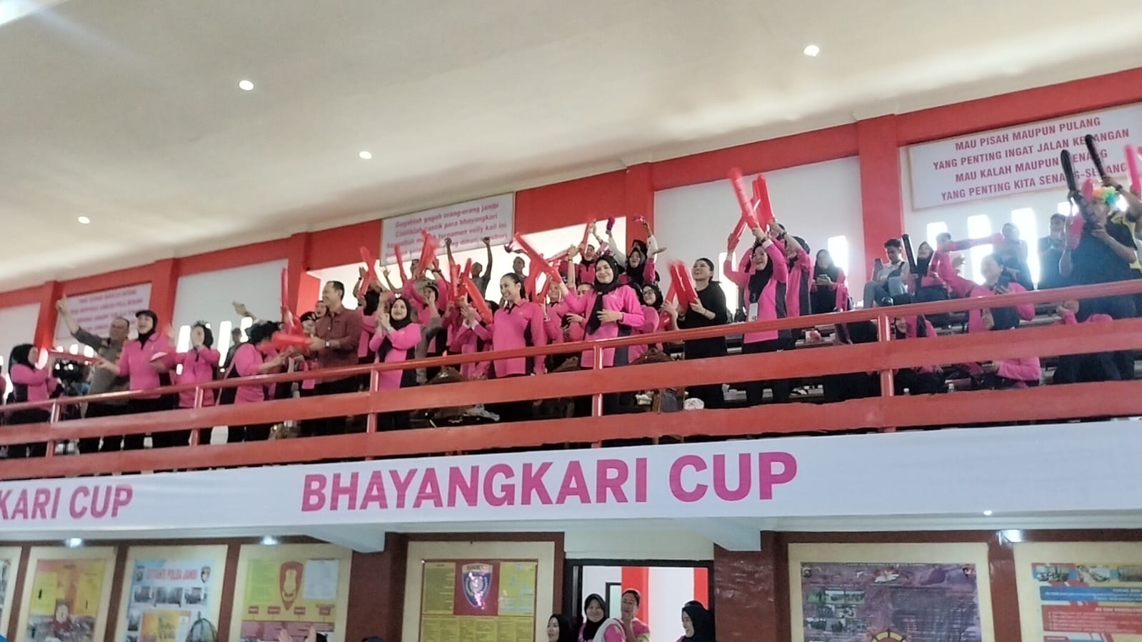 Wakapolda Sumsel Menyaksikan Pertandingan Bola Voli Bhayangkari Cup Dalam Rangka HUT Bhayangkari ke 72 di SPN Polda Jambi,