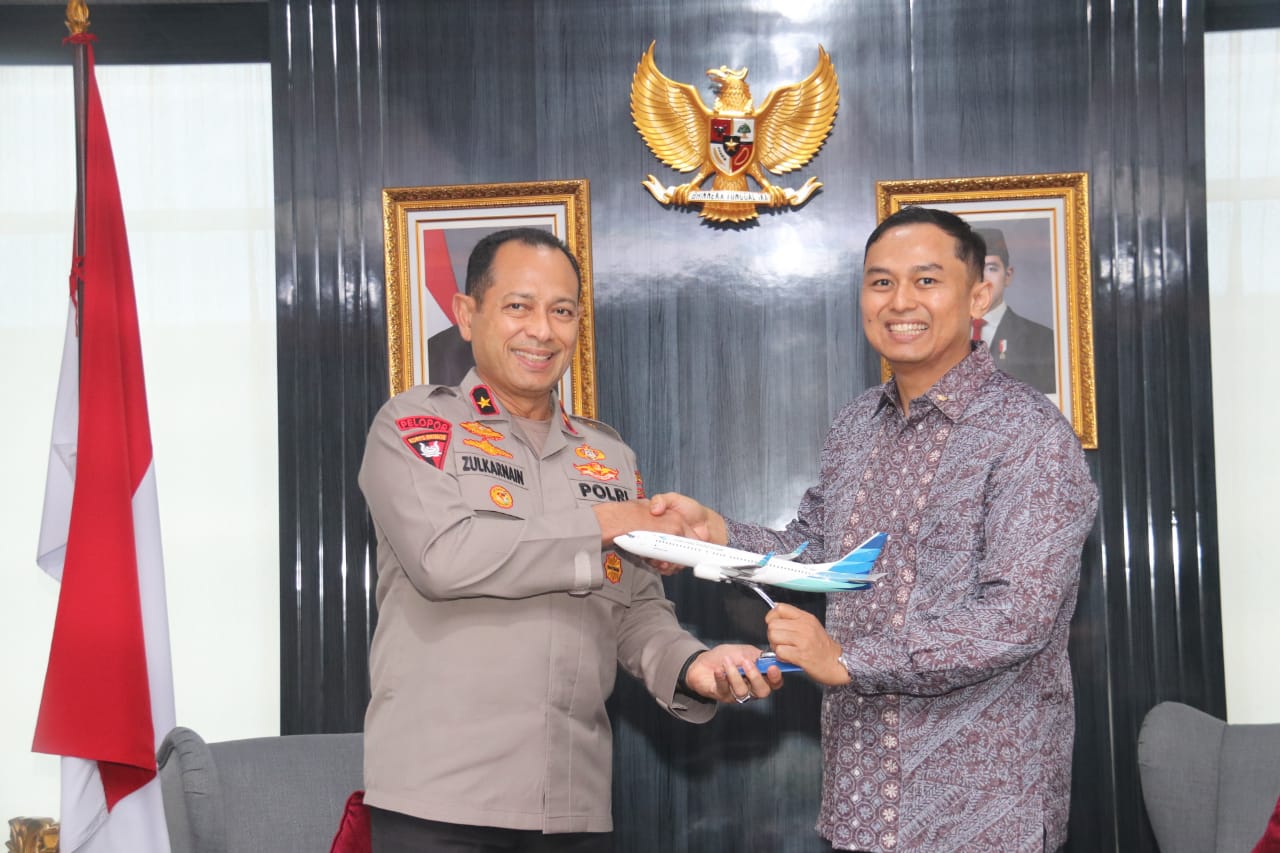 Pertemuan tersebut, Direktur Komersial Pt. Garuda Indonesia (Persero Tbk) Reza Aulia Hakim menyampaikan ucapan terimakasih kepada Polda Sumsel atas dedikasi dan kerjasama yang sudah terjalin dengan pihak PT Garuda dalam hal pengamanan Bandara sehingga pengoperasian Maskapai Garuda senantiasa terlindungi dan berjalan dengan baik, dan juga dengan adanya Pos Kepolisian di dalam Bandara.