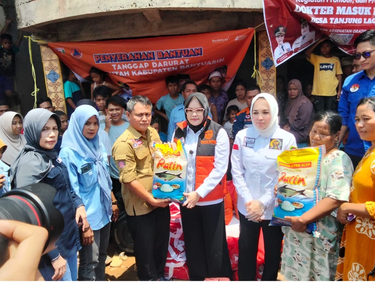 Liputanabn.com | Banyuasin – Wakil Bupati Banyuasin Netta Indian, mendatangi korban kebakaran yang ada di Desa Tanjung Lago, Kecamatan Tanjung Lago, Kabupaten Banyuasin, Sabtu (4/10/2025).