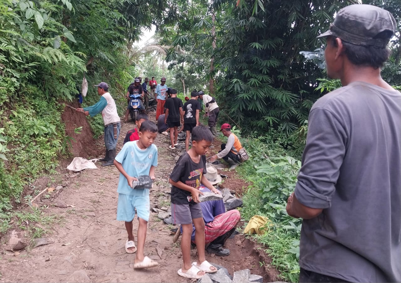 Liputanabn.com | Lebak – Warga Kampung ci Ririgi RT 04 RW 03 Desa Pagelaran kecamatan Malingping kabupaten Lebak, Provinsi Banten, melakukan gotong royong membangun Jalan Desa dengan anggaran biaya matrial hasil dari iyuran.yang disebut dana partisifasi dari Swadaya masyarakat, dan tanpa anggaran dana Desa Setempat ,rabu 04/06/2025.