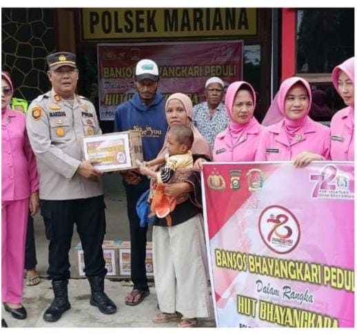 Kapolres Banyuasin AKBP Ferly Rosa Putra SIK melalui Kapolsek Mariana AKP Marzuki SSos menyampaikan kegiatan ini merupakan wujud nyata kepedulian Polri kepada masyarakat dalam rangka HUT Bhayangkara ke -78 tahun 2024.